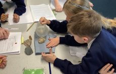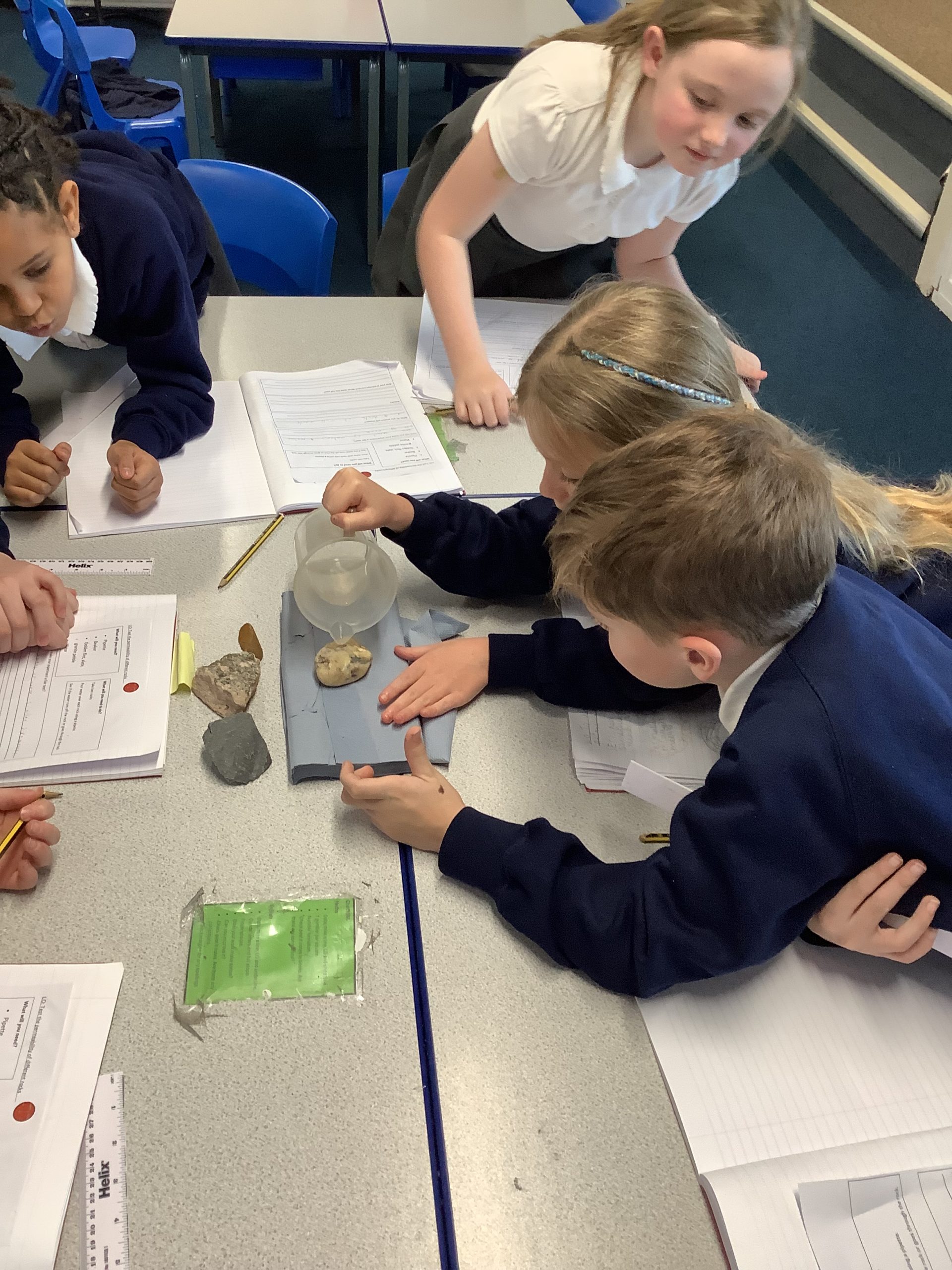 The children investigated different rocks to find out if there were permeable or not permeable.