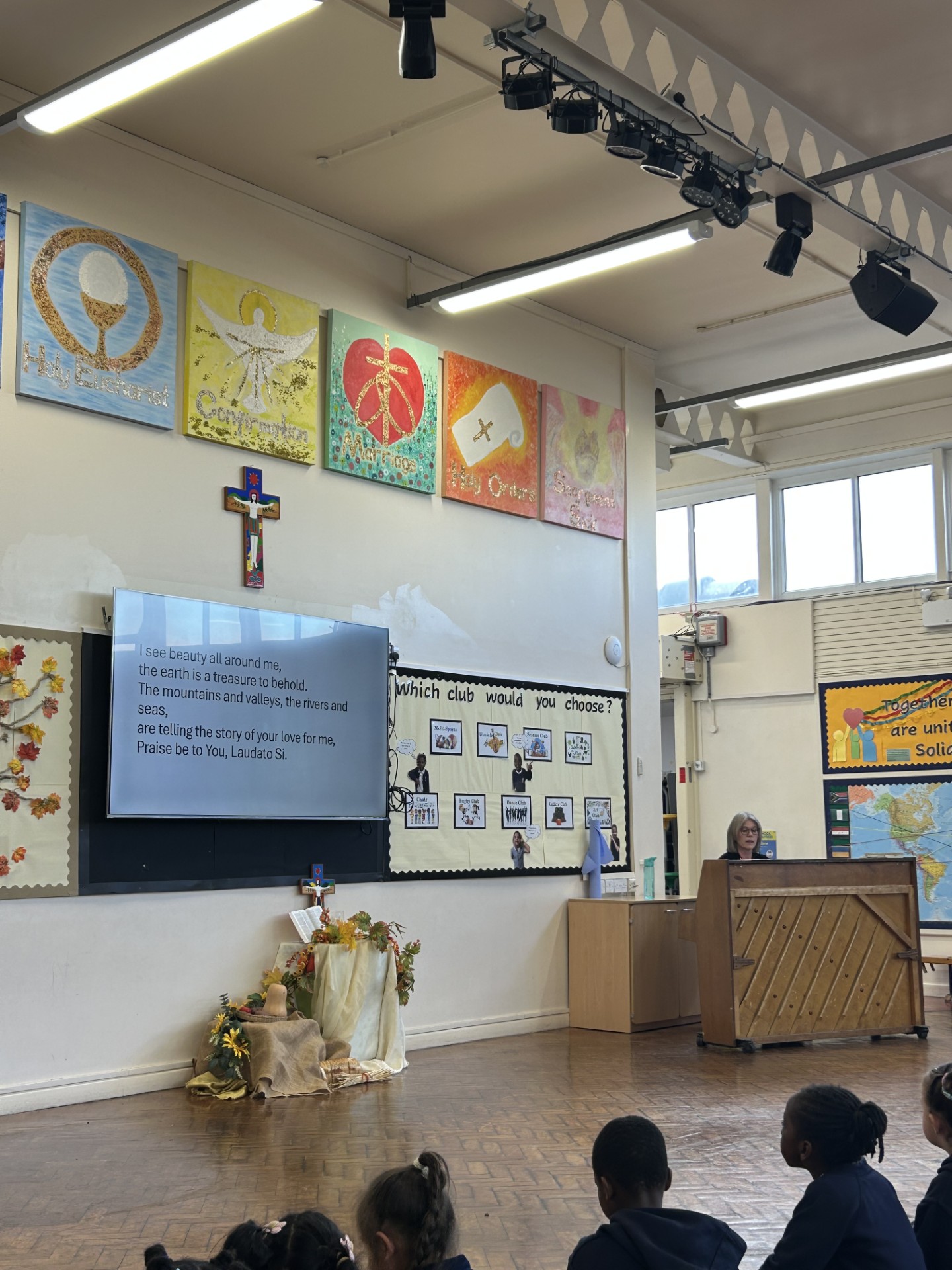 During hymn practice today we sang our Harvest songs and Carmel helped us by playing along on the piano. We can’t wait to show everyone what we have learnt at our Harvest Mass.