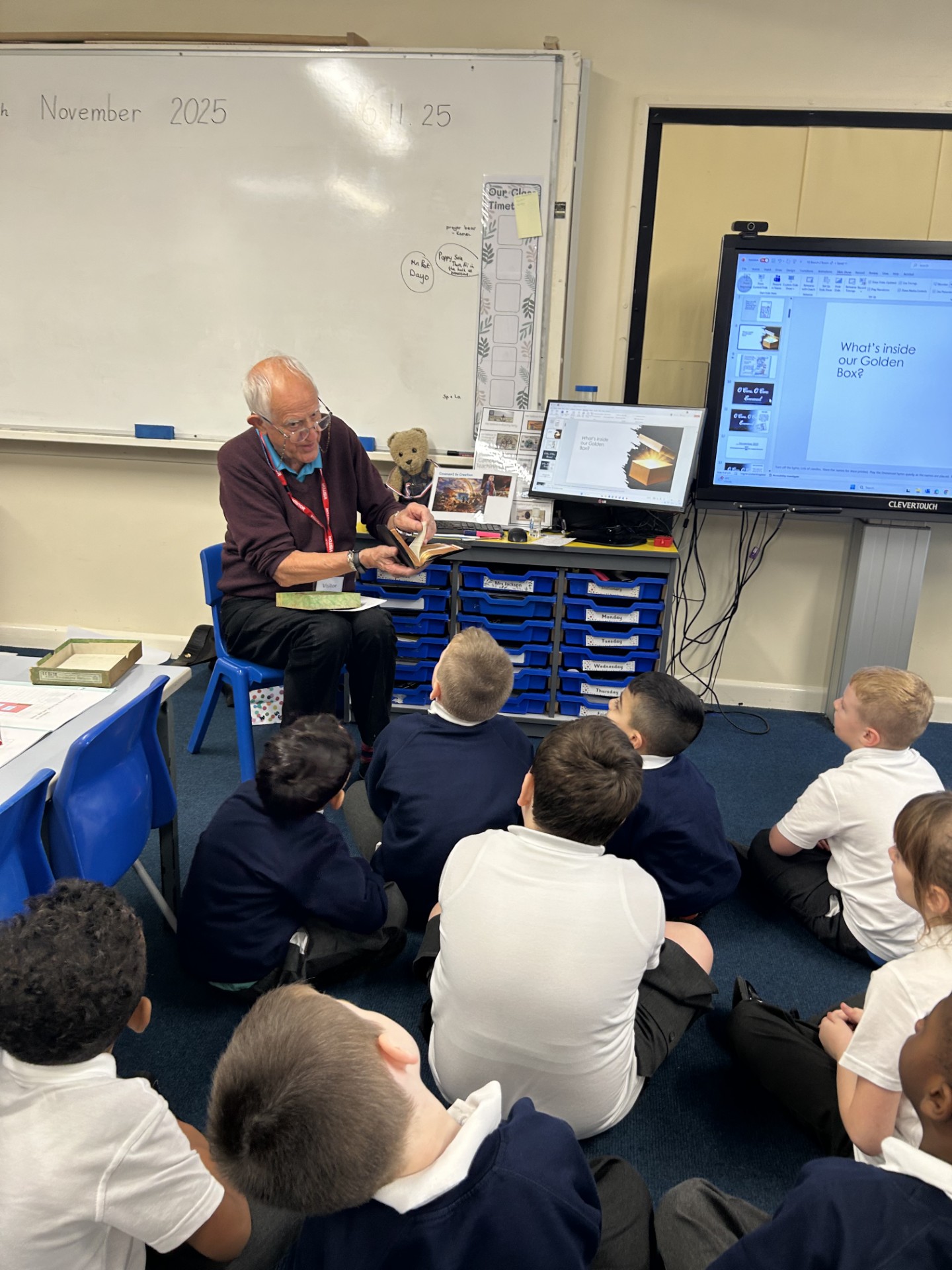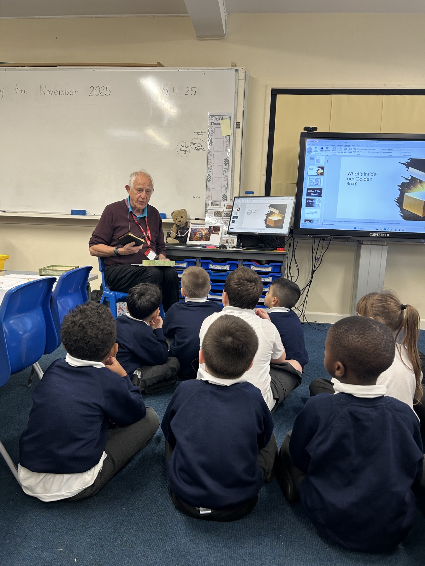 Today, Y2 were lucky enough to have one of our parishinors visit our classroom and share his family Bible. He shared the history of how his Bible was first given to his dad when he left school and is still now passed down through family members. The children explored the Testaments and listened to Ray read the story of Noah. What an inspiring afternoon for Y2!