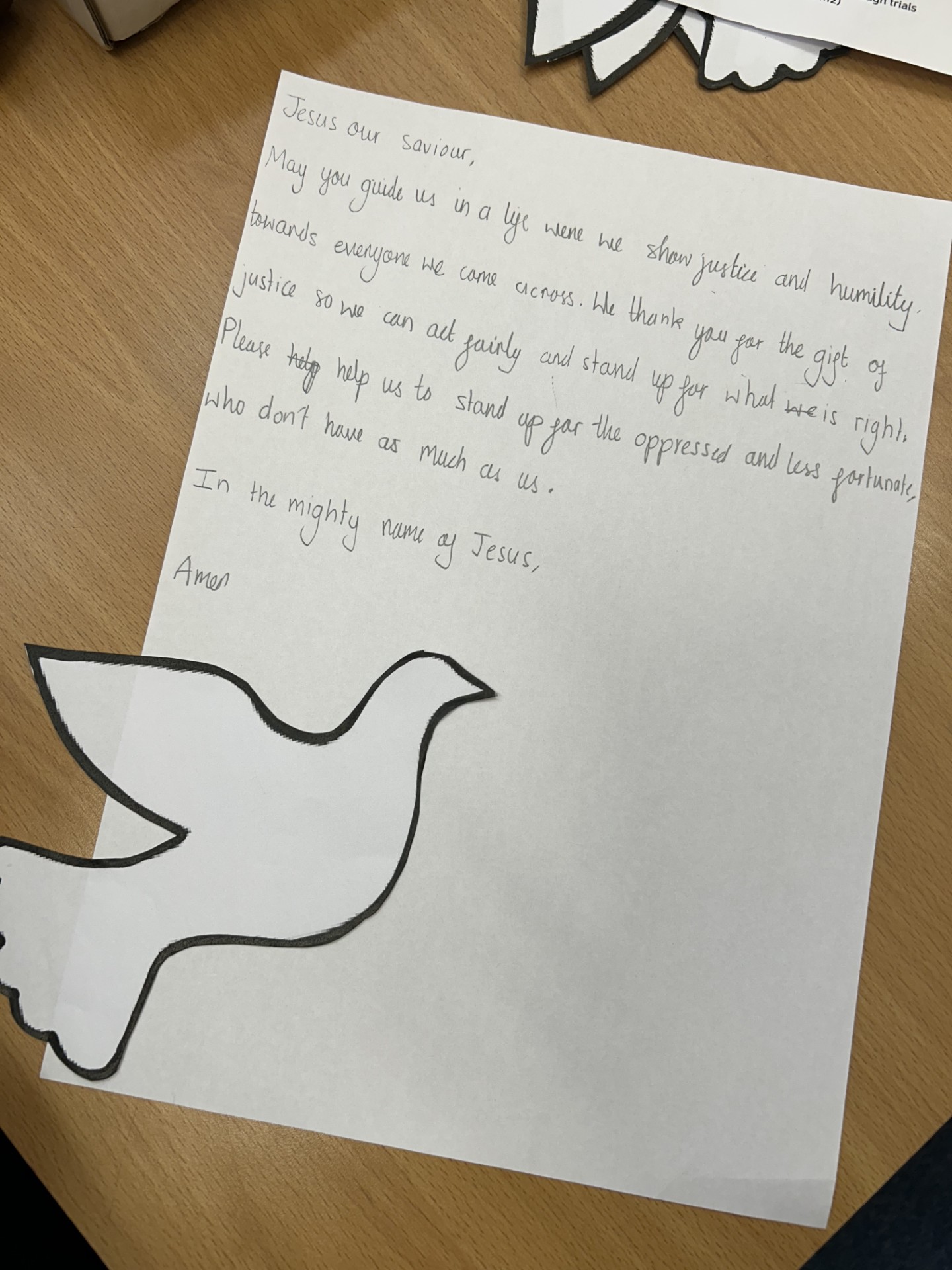 Today in CAFOD Club the children wrote prayers based on the Gospel Values. These will be displayed on our Gospel Values prayer wall. We sat in silent reflection before we read our prayers which inspired us all to live in the footsteps of Jesus.