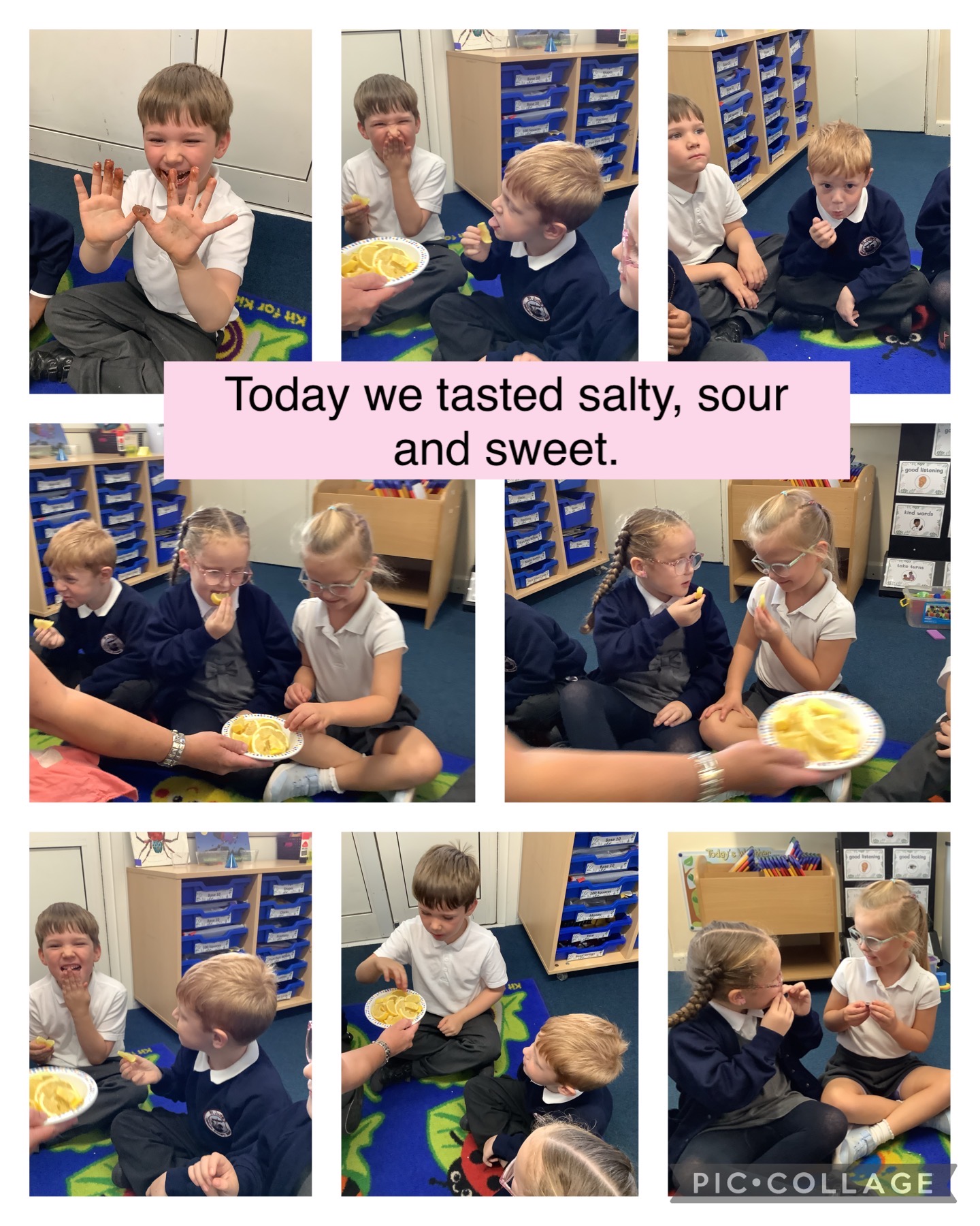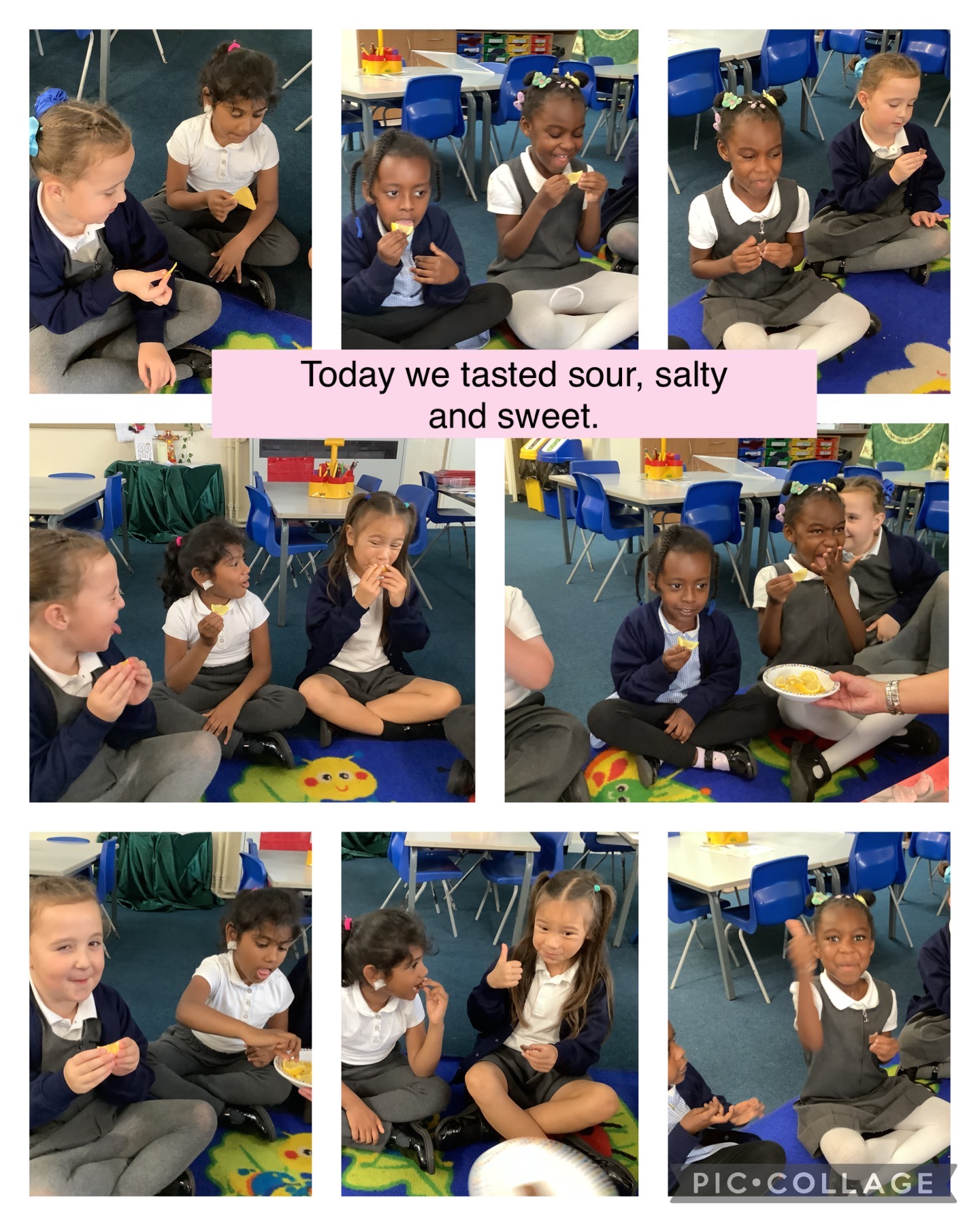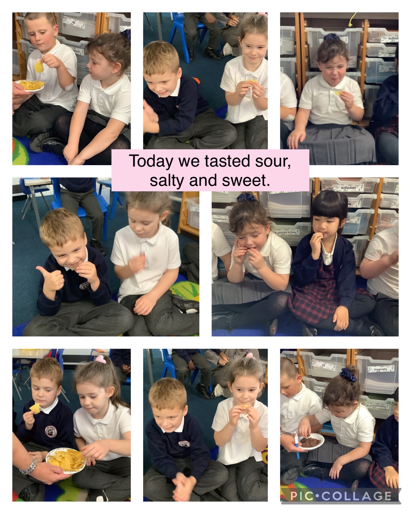 84In our Science lessons, we have been looking at our 5 senses. Today we explored our sense taste. We tried foods that were sour, salty and sweet.