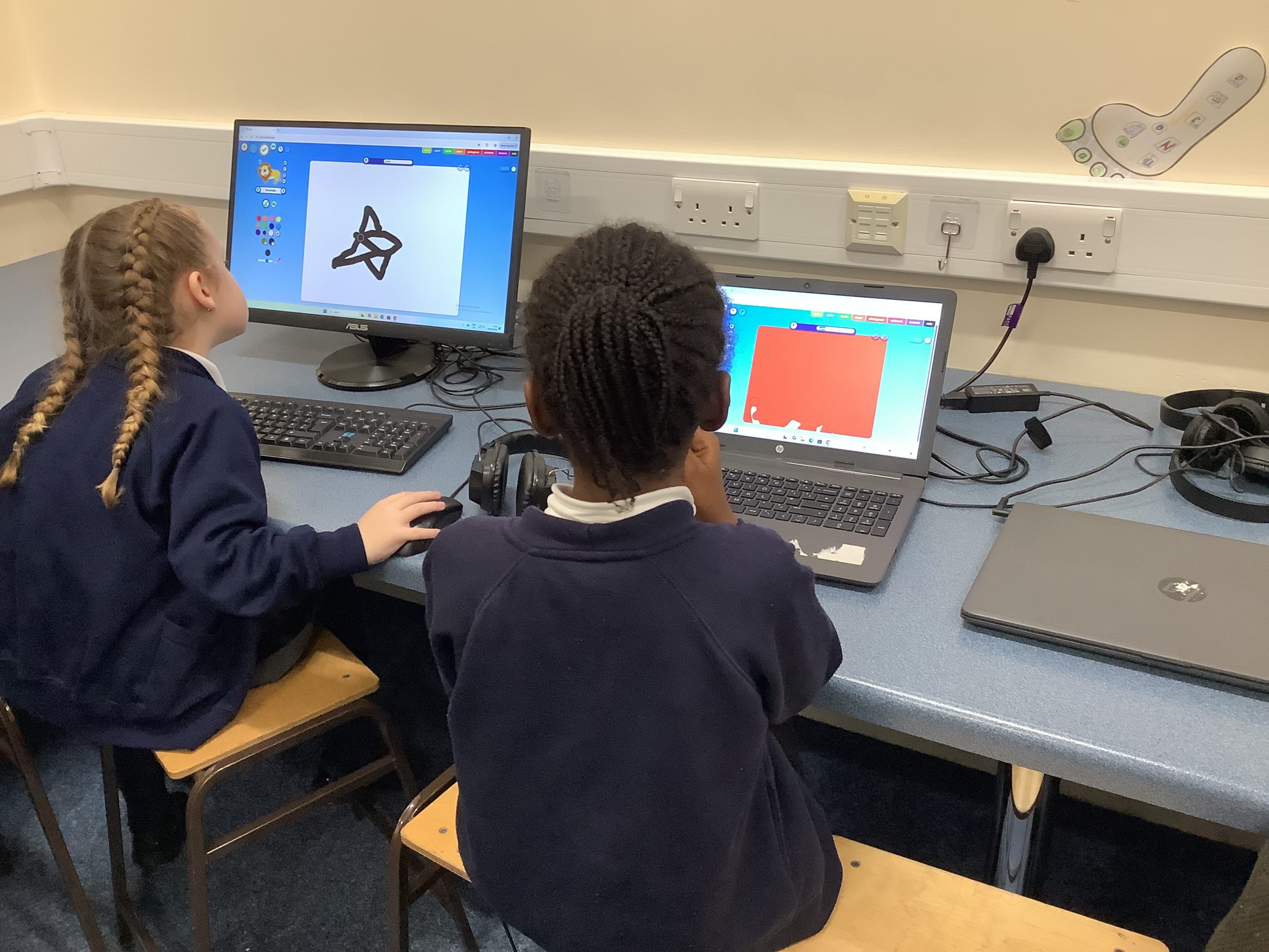 Year 1 have been giving instructions to a friend to move around a space by following simple instructions. They then began to find out what an algorithm is and created their own using software to create movement and patterns on a screen.