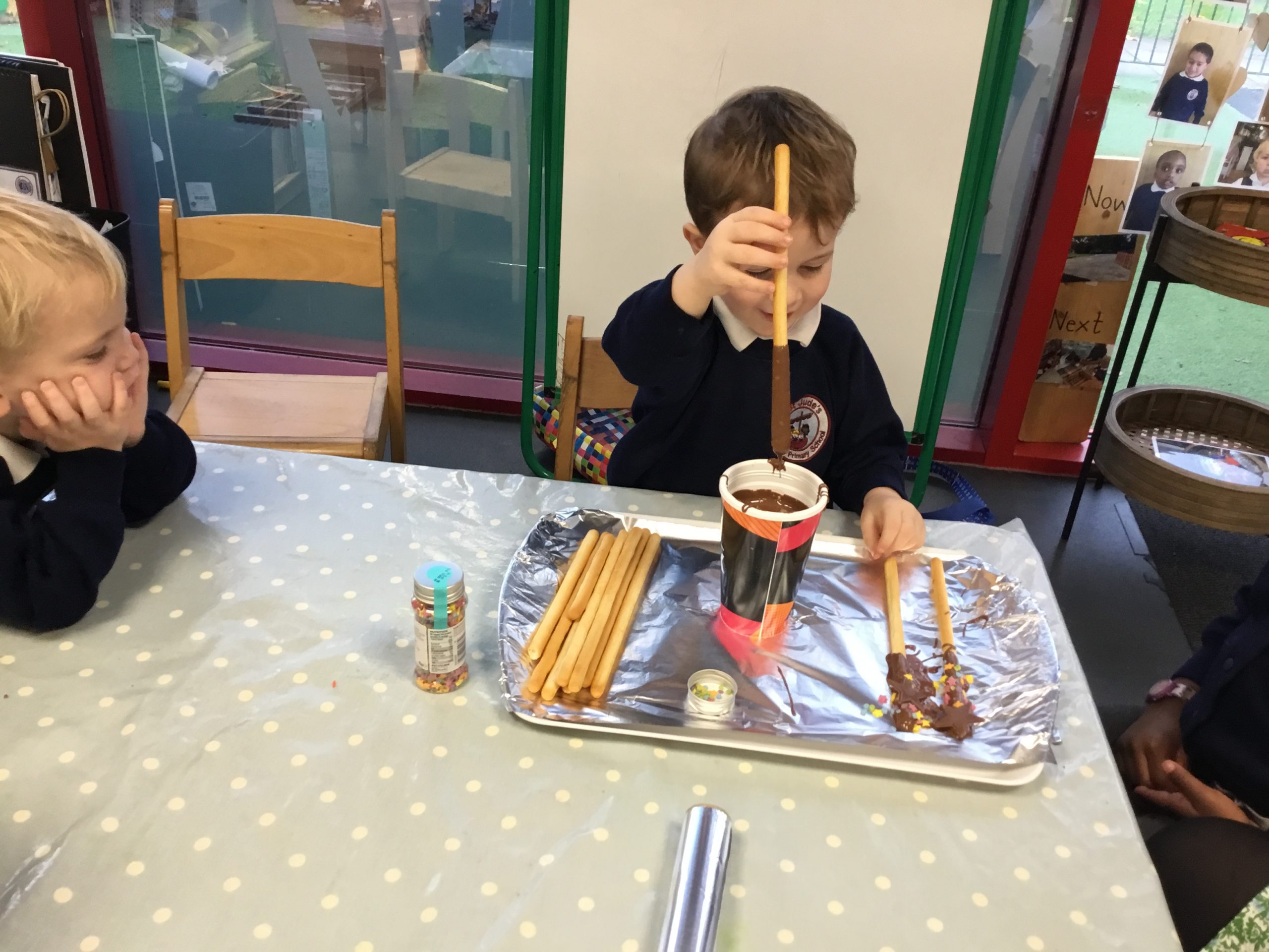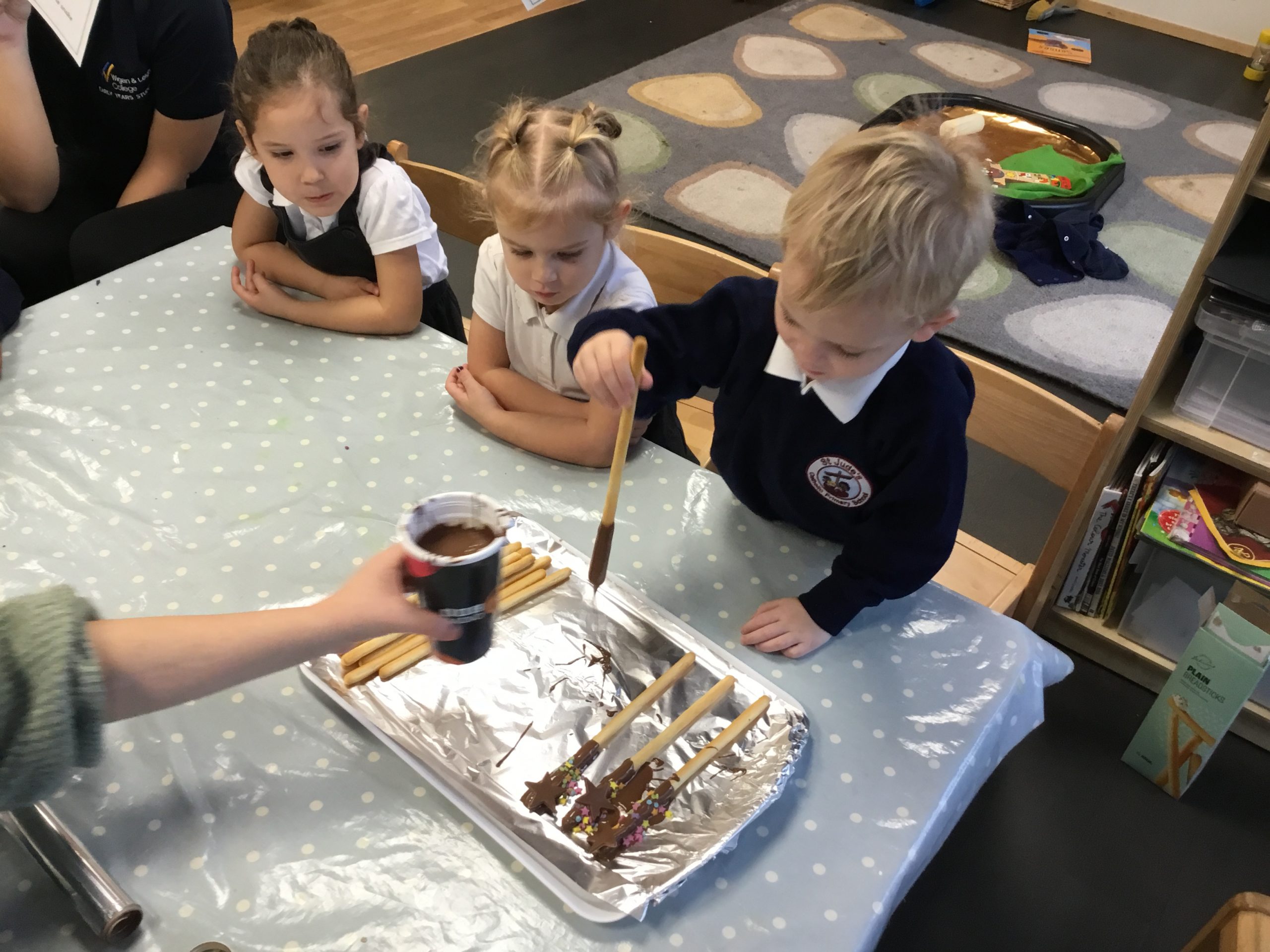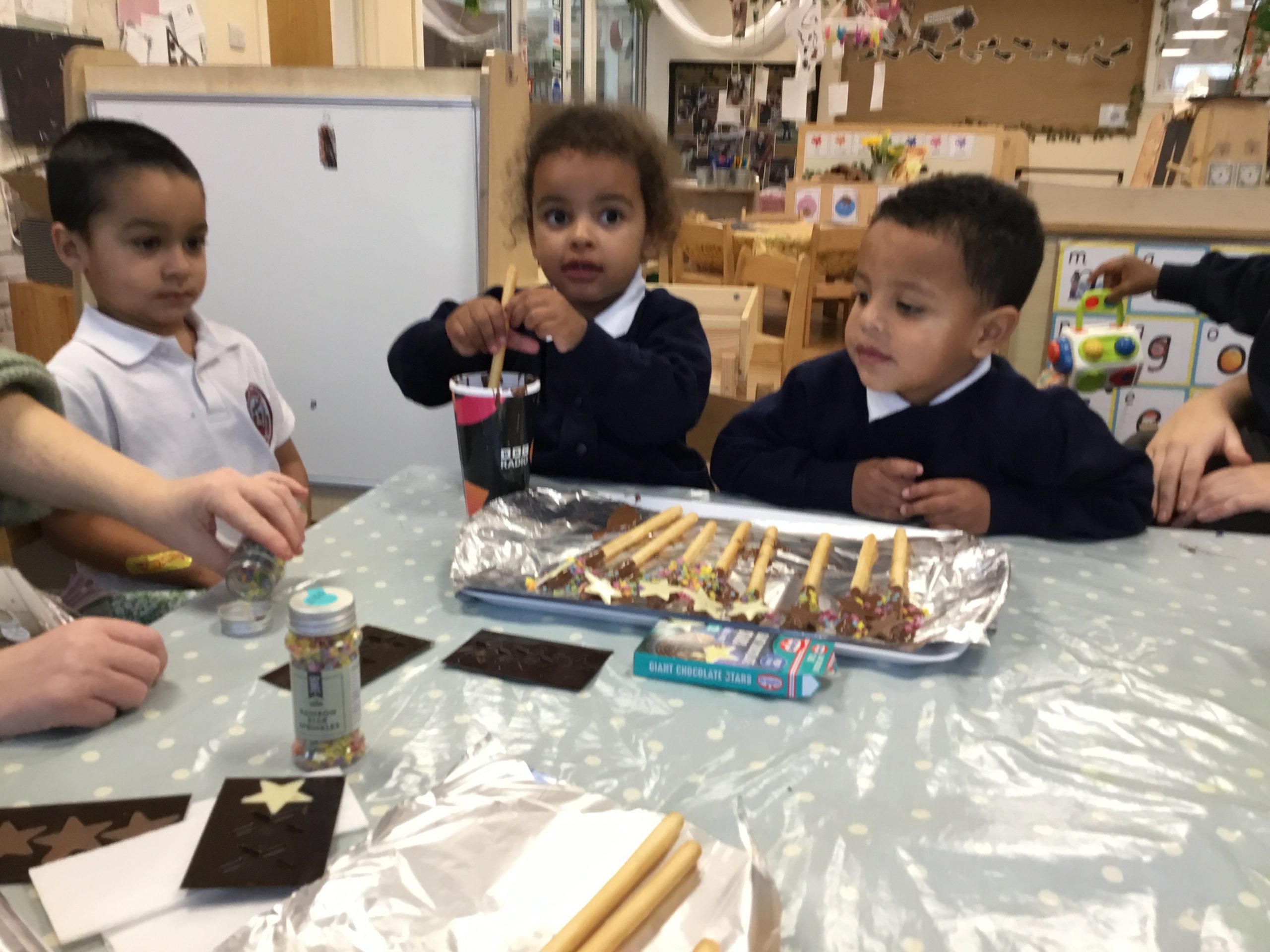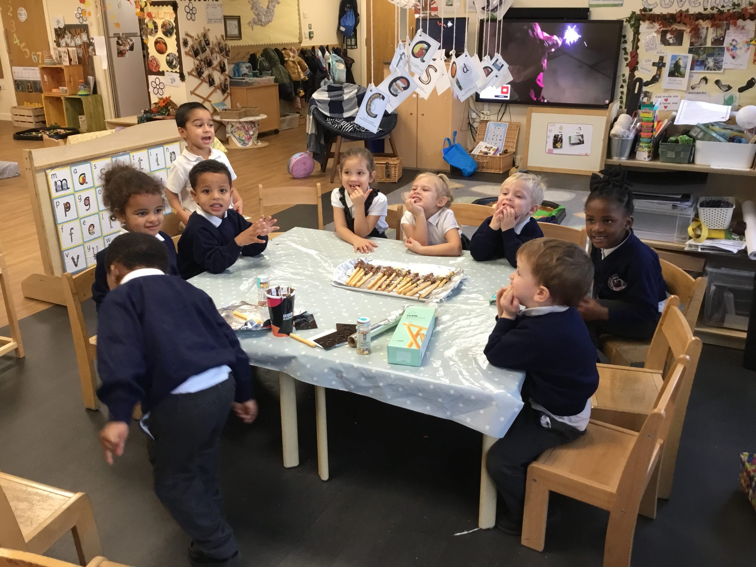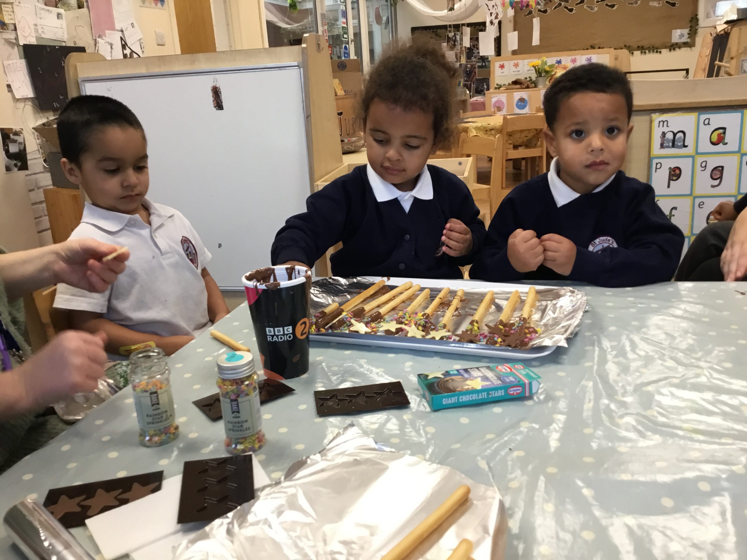 This morning in preschool to celebrate Bonfire Night we have made some chocolate sparkler sticks. We loved to decorate our breadsticks and are so excited to take them home at the end of the day. ❤️🎇