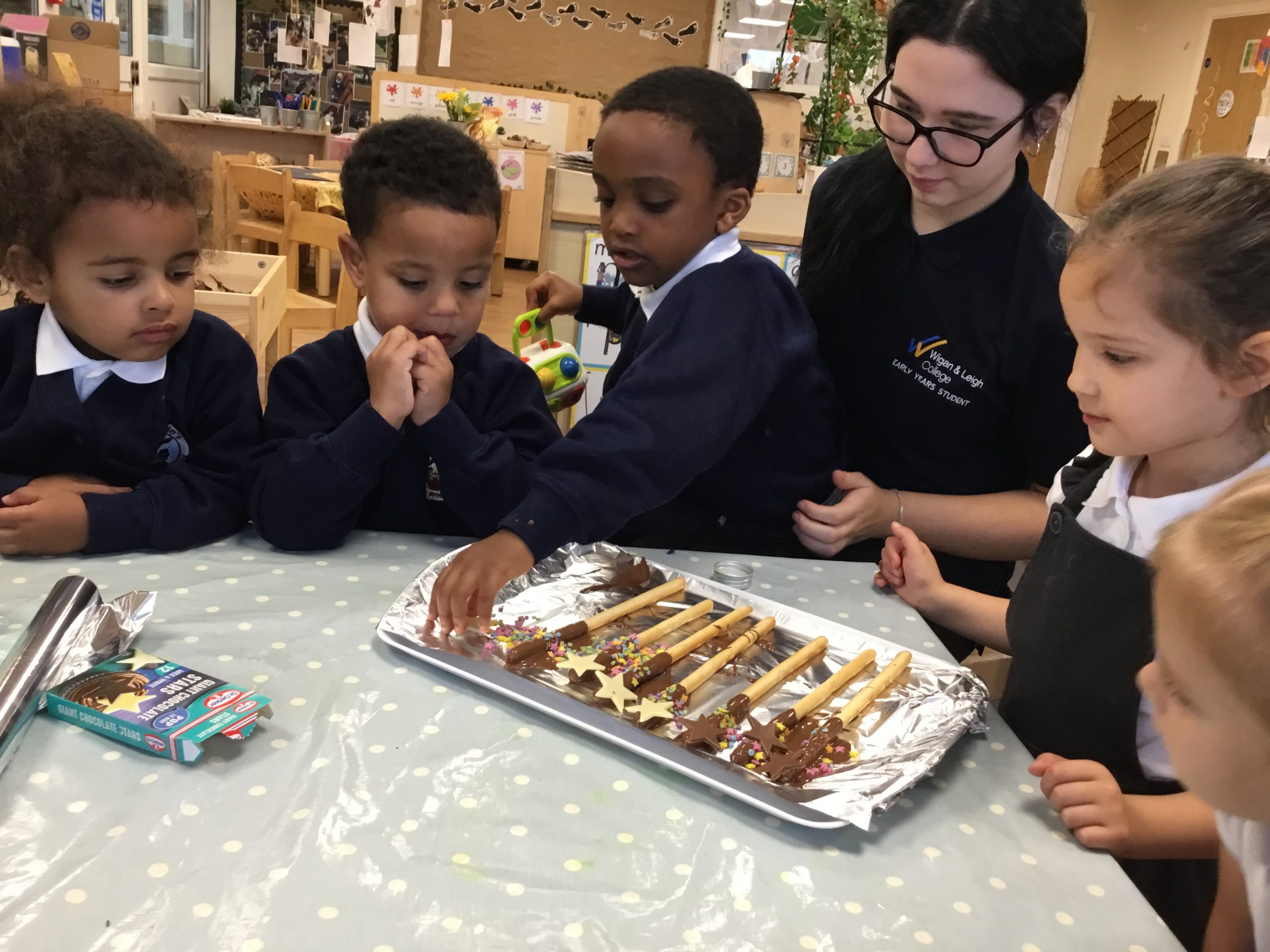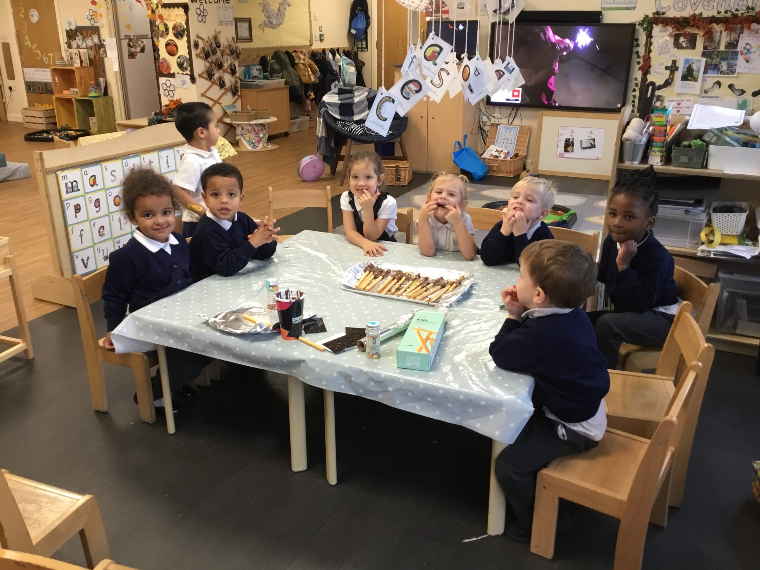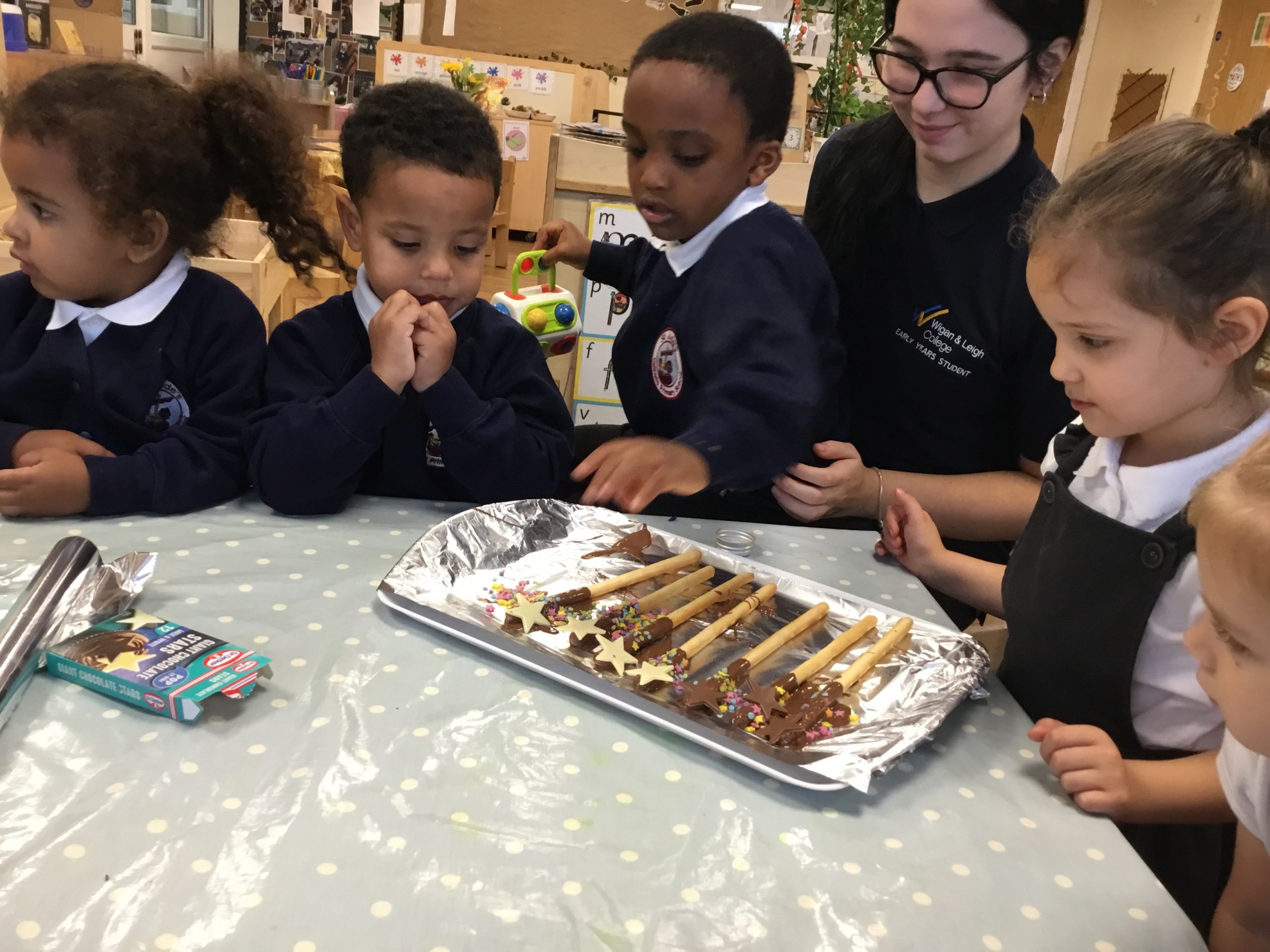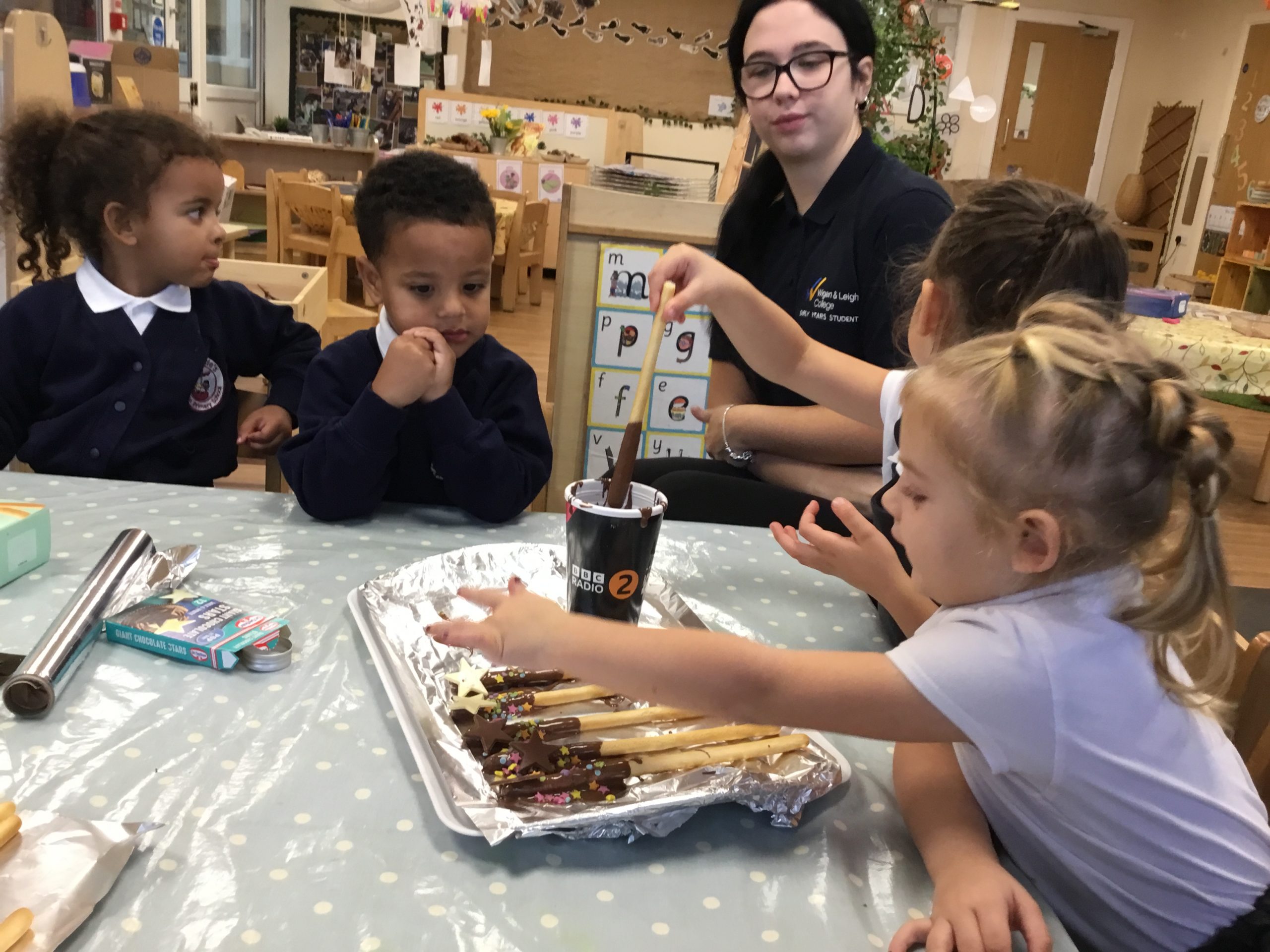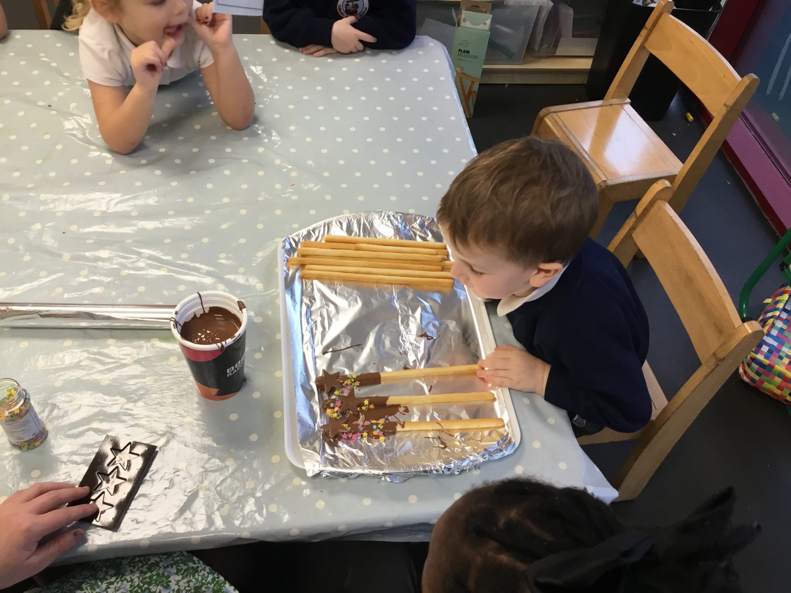This morning in preschool to celebrate Bonfire Night we have made some chocolate sparkler sticks. We loved to decorate our breadsticks and are so excited to take them home at the end of the day. ❤️🎇