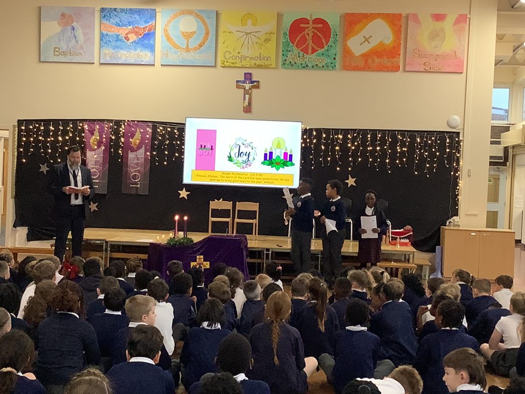 We lit the third Advent candle during our Celebration of the Word and reflected upon how we can spread joy to others this Advent. We all sang ‘Joy to the World’ remembering how Jesus was sent to bring joy.