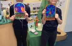 This morning, Year 2, used the artwork they had created based on the ‘Our Father’ as a focus for their Celebration of the Word. They took time to be in silence with God and think about times when they have said sorry and asked for God’s forgiveness. Their artwork will now be shared with other classes to use as a focus point during prayer too.