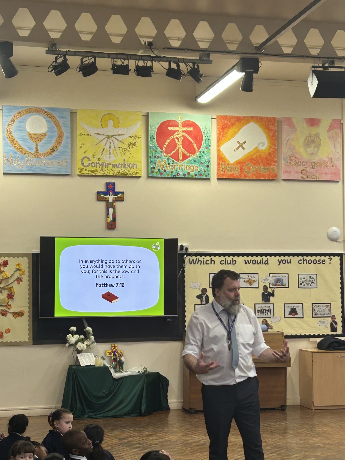 This morning, during Picture News, we thought about, ‘Respect in sports’ and how we should treat each other by following God’s rule from the Gospel of St. Matthew by treating others how you would like to be treated.