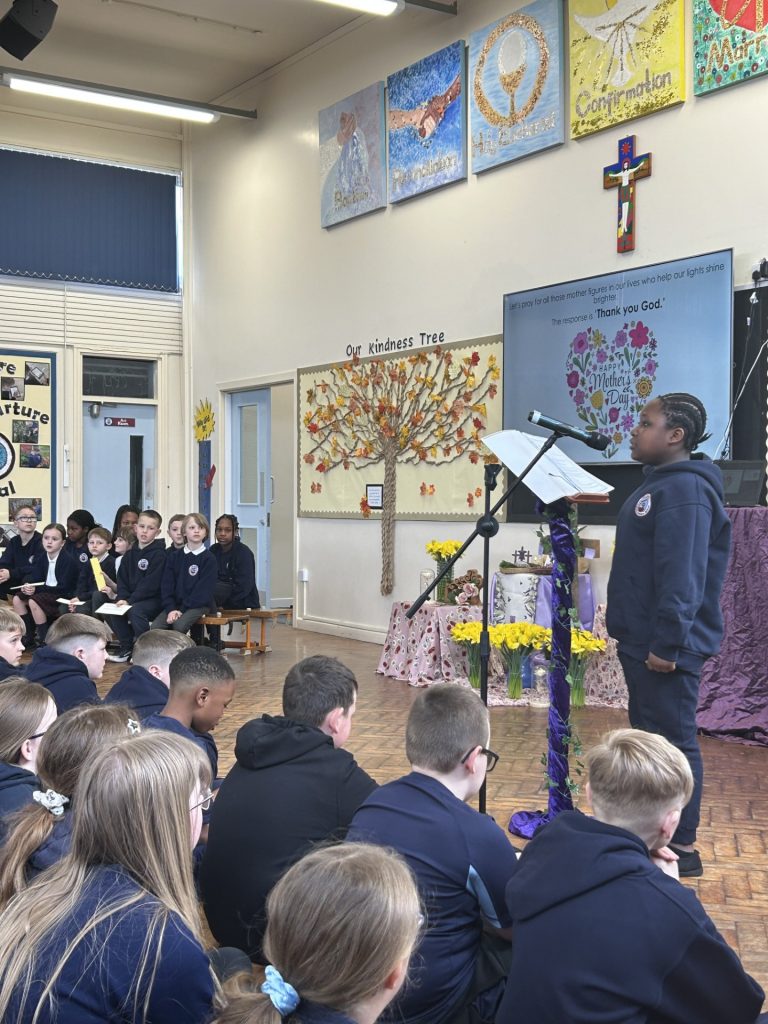 On Thursday, Year 5 led a prayer and liturgy to celebrate Pentecost. It was attended by their grown ups and the Key Stage 2 classes. They did an excellent job at organising the event: designing invitations, creating a perfect gathering, enacting the Fruits of the Spirit, choosing the song, writing a prayer and encouraging grown ups to choose their own path for spiritual growth in the Holy Spirit.