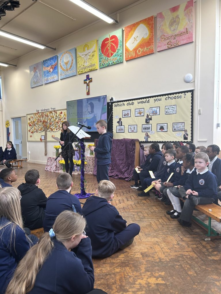 Y3, Y5 and Y6 attended mass today with the parish. Y3 have been learning about the Liturgy of the Eucharist so they brought up the offertory whilst Y5 and Y6 said the readings and bidding prayers. After mass, children were then invited to confession as part of their Lenten journey.